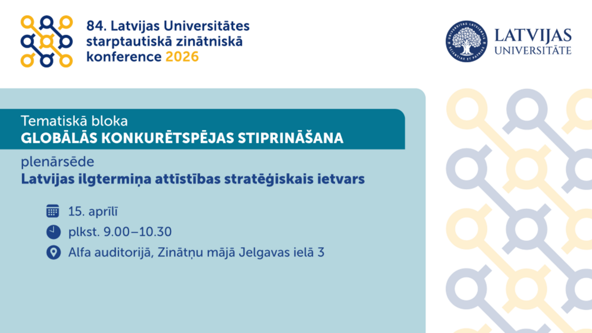 Konference notiks klātienē LU Akadēmiskajā centrā (Rīgā, Jelgavas ielā 1 un 3) un tiešsaistē. Konferences apmeklējums ir bez maksas un reģistrācija ir atvērta līdz 11. aprīlim.
