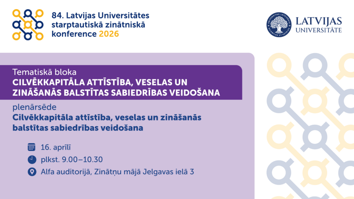 Konference notiks klātienē LU Akadēmiskajā centrā (Rīgā, Jelgavas ielā 1 un 3) un tiešsaistē. Konferences apmeklējums ir bez maksas un reģistrācija ir atvērta līdz 11. aprīlim.
